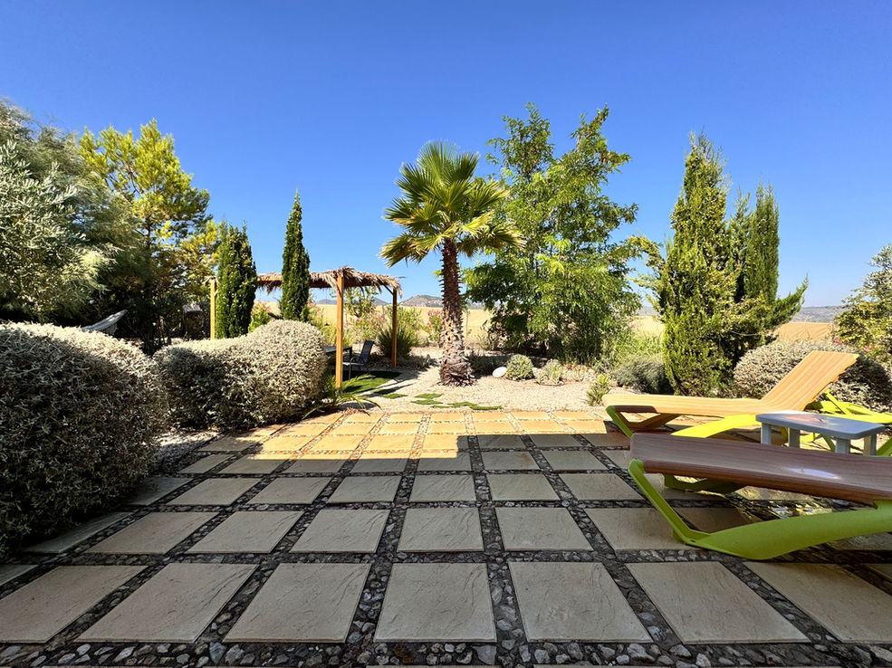 Private terrace, with table, chairs & deckchairs: view of the countryside, its Mediterranean garden and its superb sunsets.